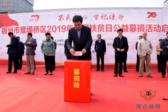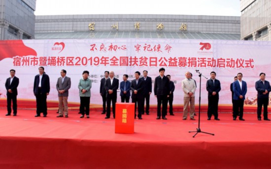 10月17日,宿州市暨埇橋區(qū)2019年全國扶貧日公益募捐活動啟動儀式在宿城銀河廣場隆重舉行。募捐現(xiàn)場,我市愛心企業(yè)、單位、個人踴躍捐款,用實(shí)際行動助力脫貧攻堅。記者 董虎 攝